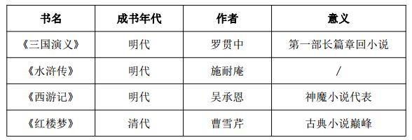 (2)考查作品的意义,关注《三国演义》,是第一部长篇章回小说。